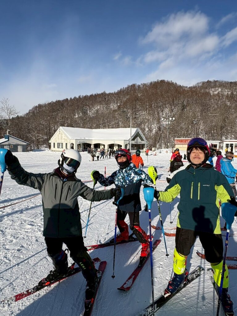 今回は日帰りという形で1日目は札幌国際スキー場でのフリー練習、2・3日目は美唄国設スキー場でのSL・GS練習を行いました。私を含め1年生の多くは大学から競技スキーを始め、今回が人生初のポール練習となりましたが、それぞれが課題を認識すると同時に、もっと速くなりたいという思いが強く芽生えました。合宿納めには忘年会を行い、焼肉でタンパク質を補充して疲れを癒しました!